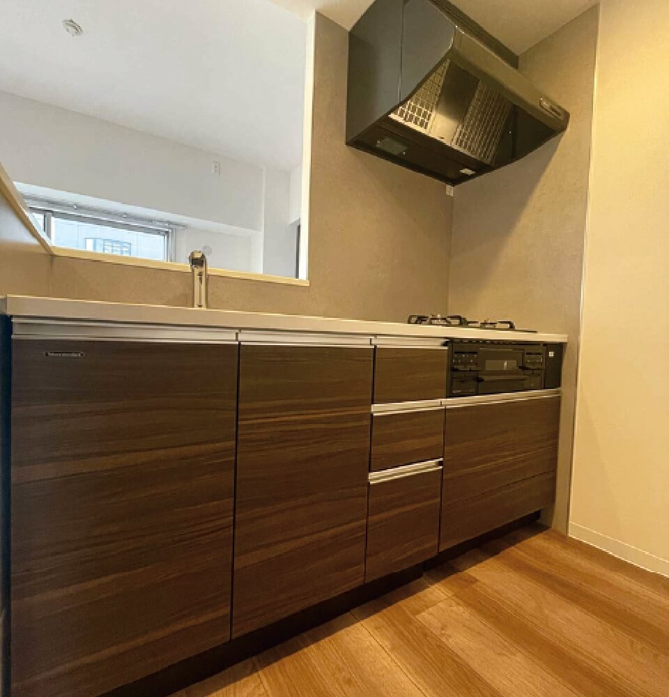 築29年で、狭い独立型キッチンから開放的なオープンカウンターキッチンにリノベーションした例。