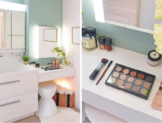 洗面台と一体化した美容専用スペースは、女性だけでなく男性からも人気が高い。