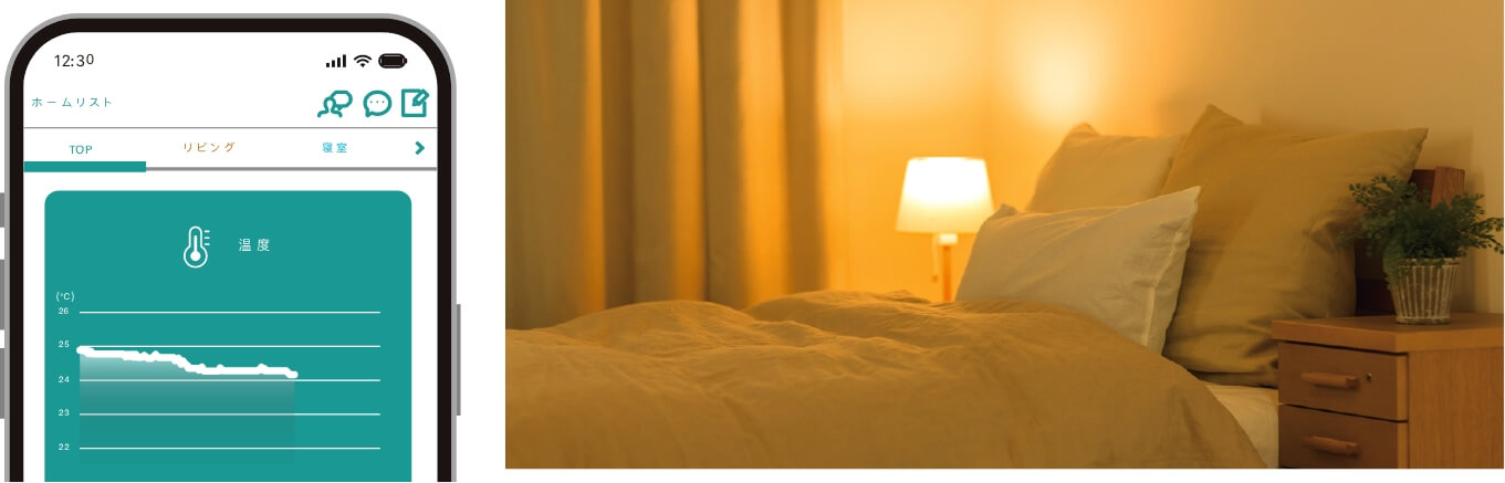 住環境マネジメントシステムアプリ「SLIM」は、温湿度管理機能付き。お手持ちの家電などとつなぐことで、美活をサポート。 防音ルーム「おうち静」なら、図書館並みの静かさを保ち、快適な睡眠を提供。