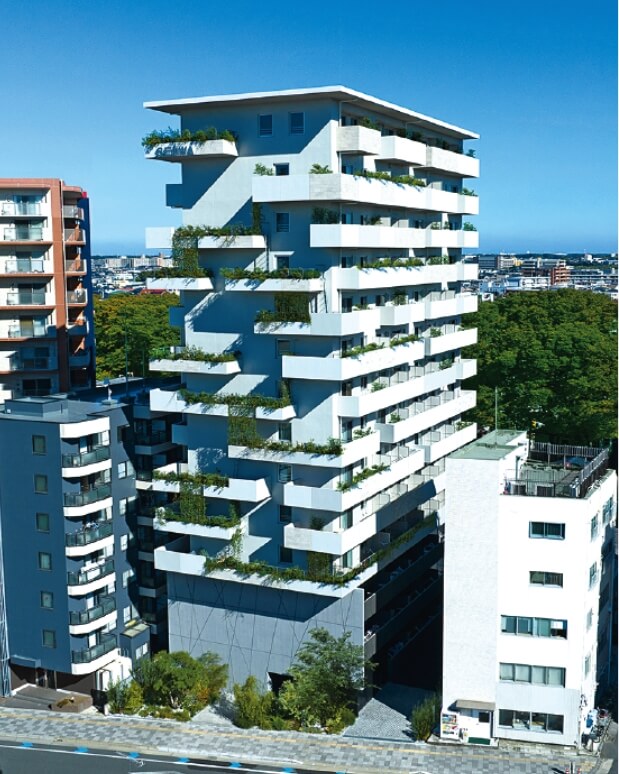 25年度受賞「F・TOUR」:外部とつながるバルコニーは各住戸で形状が異なり、個性的な暮らしをサポート。